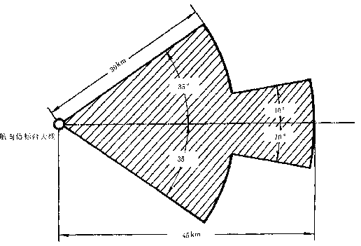 圖1 航向信標臺覆蓋區(qū) 4.1.4 航向信標臺覆蓋區(qū)內,最低信號場強為40μV/m(32dB)。